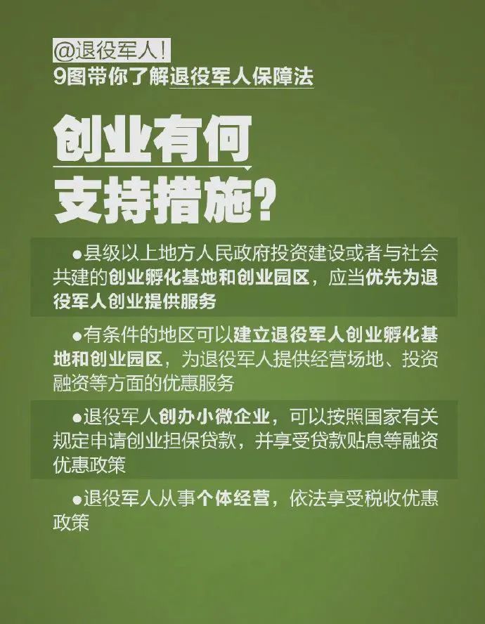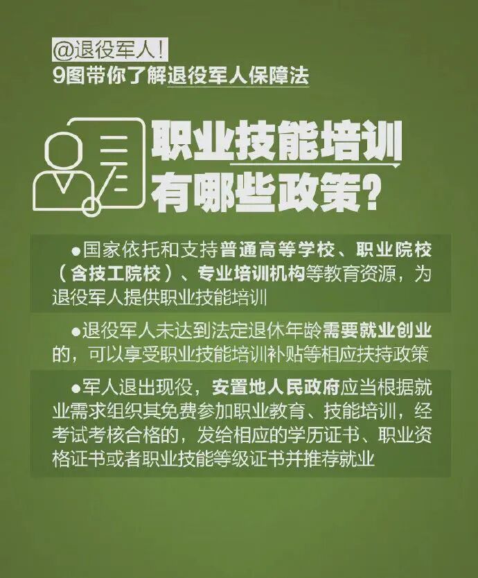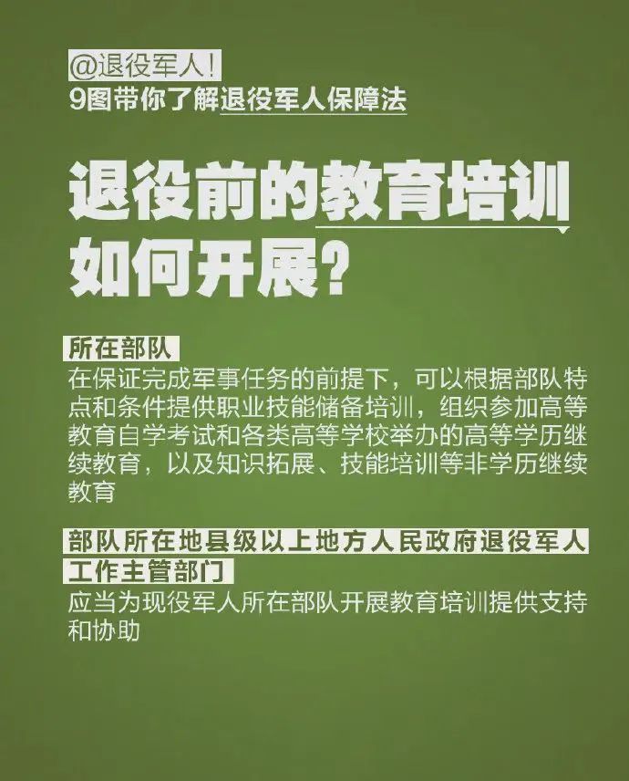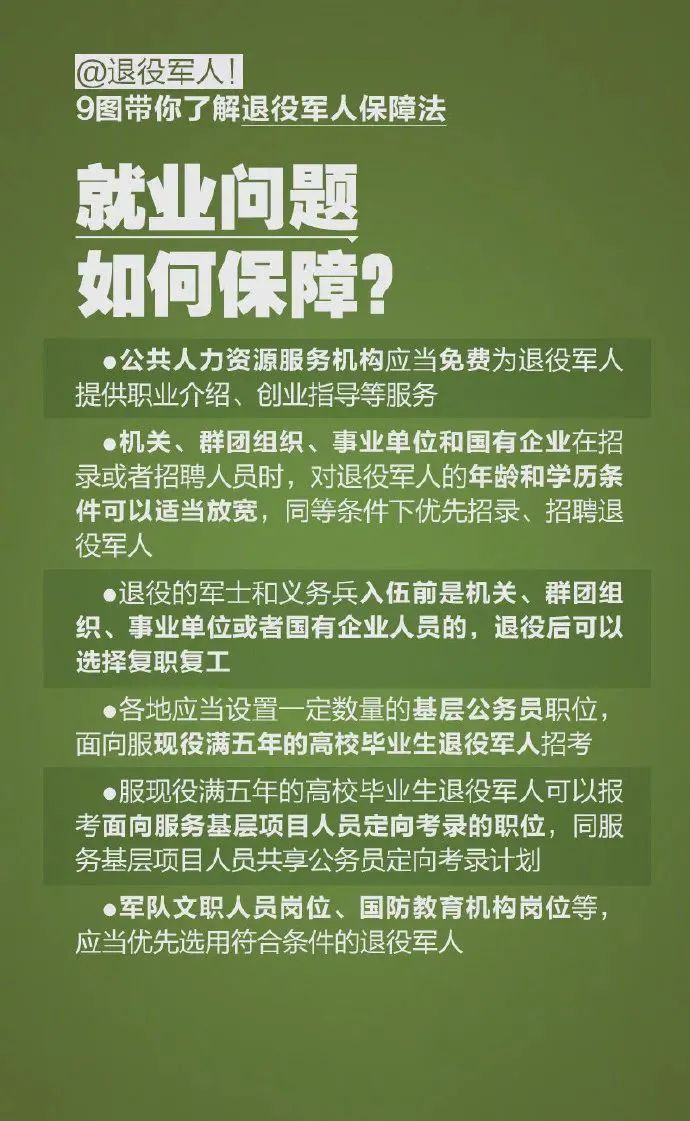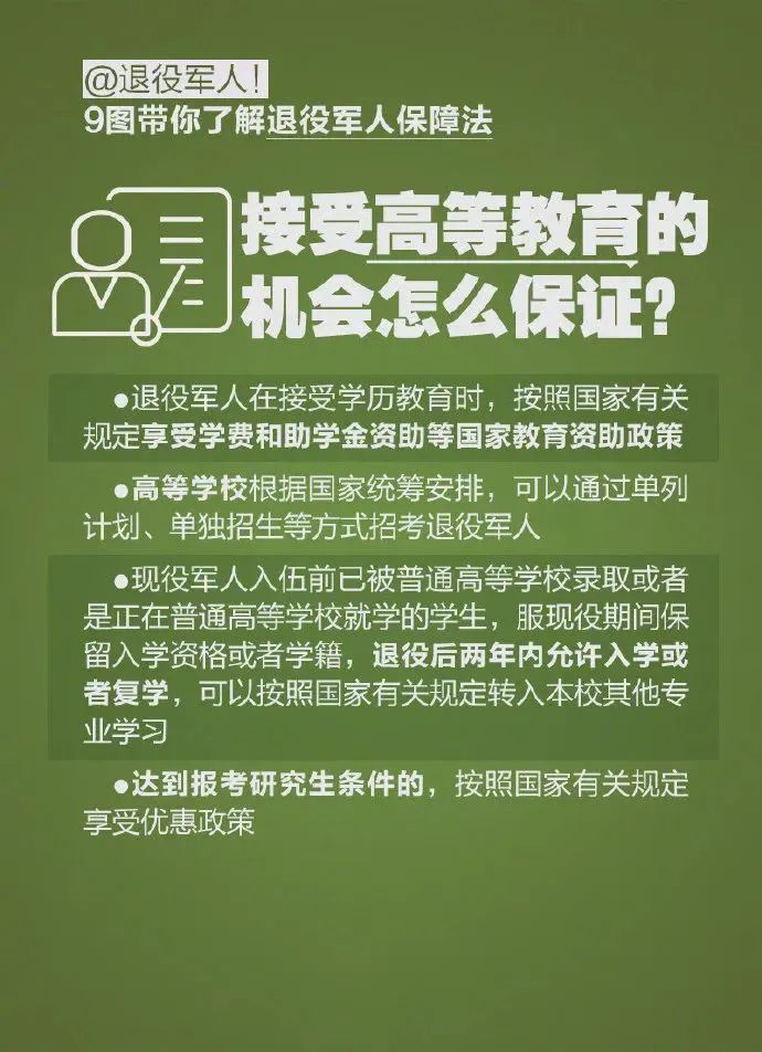 《中华人民共和国退役军人保障法》 关于教育培训、就业创业、抚恤优待等问题 9图带你了解